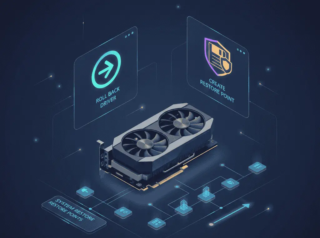 The most common way to restore a GPU driver in Windows is the “Roll Back Driver” option in Device Manager. If display issues, game crashes, or performance drops occur after a driver update, Windows allows you to revert to the previously installed driver version. This process only restores the driver files and does not affect system data or installed applications.